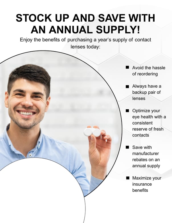 Showcase the benefits for patients when purchasing an annual supply from you today with this in-office annual supply flyer.